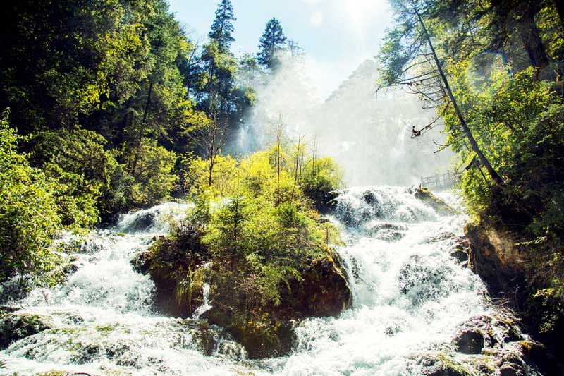 從景區入口乘觀光車進入,依次遊覽樹正群海、五花海、諾日朗瀑布。