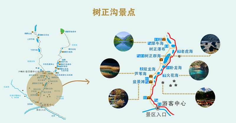 - 經典2天路線:樹正寨—諾日朗瀑布—長海—五花海—鏡海,適合時間有限的遊客。