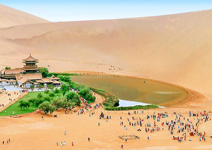 - 月牙泉清澈恆久,鳴沙山奇景天成,構成大漠中的世外桃源