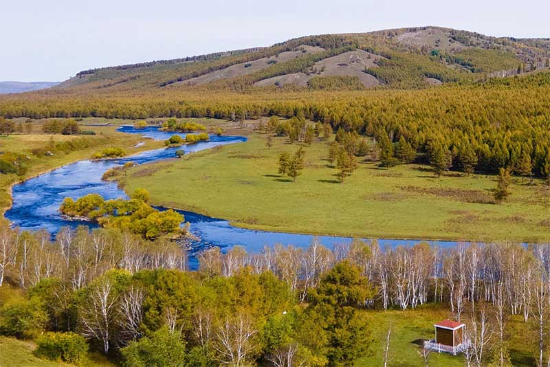 9月後,草原由綠變金,莫日格勒河如絲帶蜿蜒,日出日落美不勝收。可騎馬穿越草原、住星空蒙古包、體驗牧民生活。