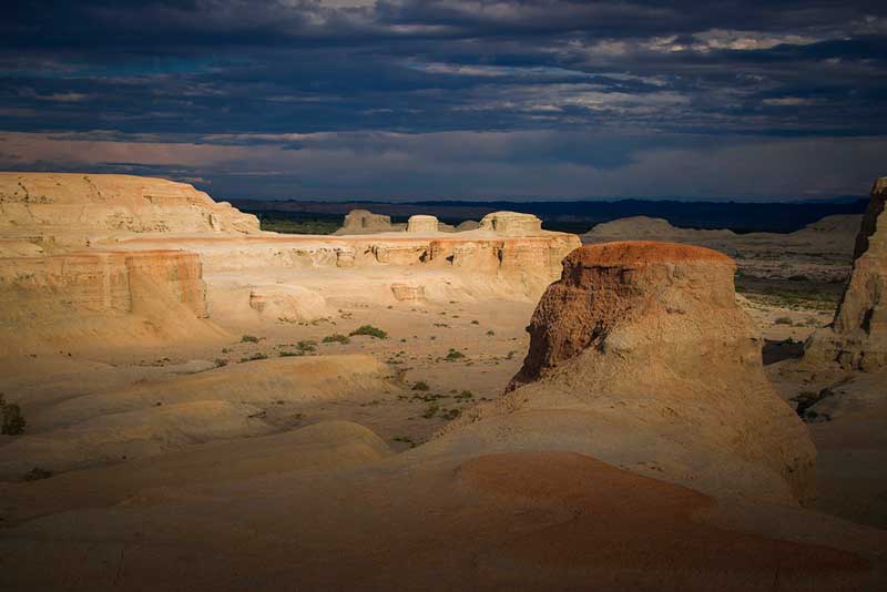 數次地殼運動使湖泊逐漸演變為夾雜砂岩與泥板岩的「戈壁台地」。千萬年的風雨剝蝕與強烈的晝夜溫差,使岩石產生裂隙並逐漸風化;狂風夾帶沙礫長年累月衝擊岩體,形成了形態各異的風蝕岩群。有的如殿、台、閣、堡,宛如一座夢幻迷宮;有的酷似人、禽、獸、畜,仿佛大千世界的縮影。