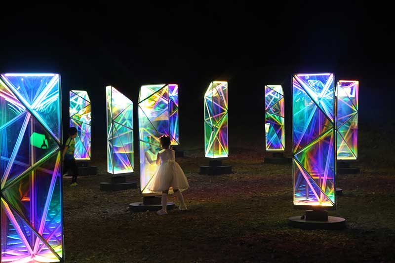 利用 3D 結構投影、泛照明系統及 LED 多媒體技術,在恐龍谷打造「探險者的集結」、「史前迷宮」、「冒險之光」、「追光森林」、「魔鬼城謎影」、「幻彩天堂打卡點」等八大景點,進行夜間遊覽體驗。以科技為助力,增加結構投影、互動觸碰、聲控感應等多方位體驗的探秘之旅。
