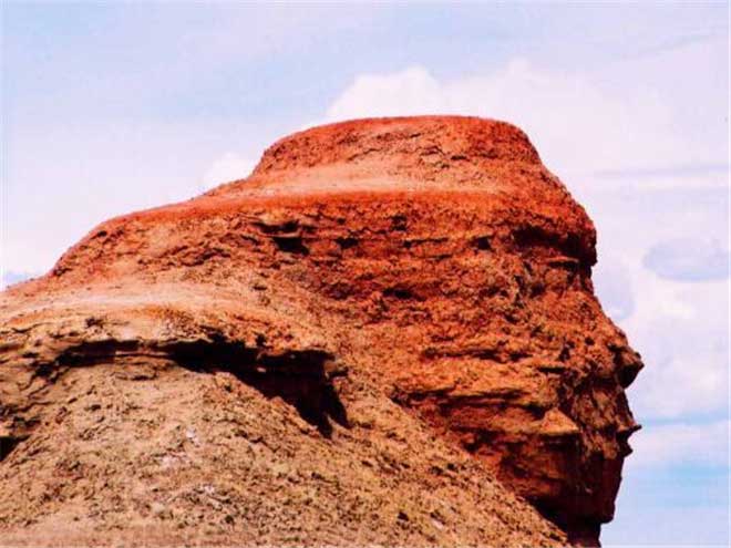 這就是魔鬼城著名的「雙面人」了。由於兩張人臉看上去一似男、一似女,所以我們又稱它「魔鬼夫妻」。大家手裡的門票上,魔鬼城旅遊公司標誌的設計靈感,也是來源於此。